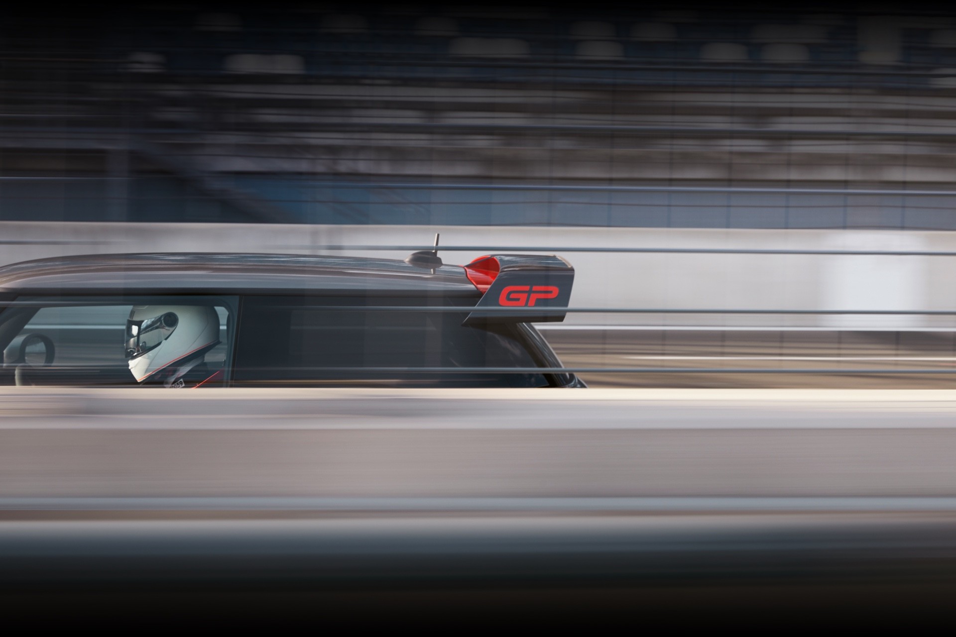 Nuestros diseñadores han llevado sus ideas a su máxima expresión. Con su resplandeciente tonalidad Racing Grey, que contrasta con las carcasas de los retrovisores y el techo en Melting Silver, el MINI John Cooper Works GP irrumpe sobre el asfalto con determinación. Los bordes y las líneas se perfilan con agudeza y precisión. Al mismo tiempo, los elementos de diseño más impetuosos, como el gran faldón delantero, los faldones laterales y el alerón del techo, acentúan el exterior para consolidar una presencia inigualable.